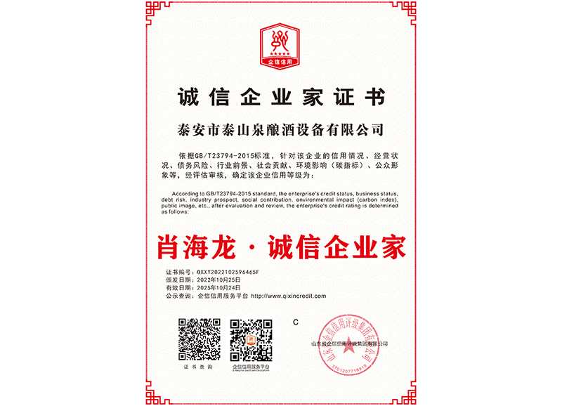 泰安市泰山泉釀酒設(shè)備有限公司,是一家專(zhuān)業(yè)從事釀酒設(shè)備機(jī)械化研發(fā)并集技術(shù)咨詢(xún),工程設(shè)計(jì),制造安裝,人員培訓(xùn)及售后服務(wù)為一體的綜合性企業(yè),本公司主要產(chǎn)品為:大曲清香、小曲清香、大曲醬香、大曲濃香等香型白酒機(jī)械化設(shè)備。 本公司與中國(guó)科學(xué)院自動(dòng)化研究所簽訂技術(shù)服務(wù)合同,引進(jìn)先進(jìn)技術(shù),研究生產(chǎn)全自動(dòng)化機(jī)械釀酒設(shè)備,由中國(guó)科學(xué)自動(dòng)化研究所的技術(shù)支持,打造最先進(jìn)的生產(chǎn)釀酒設(shè)備,公司有信心打造全國(guó)最先進(jìn)白酒...